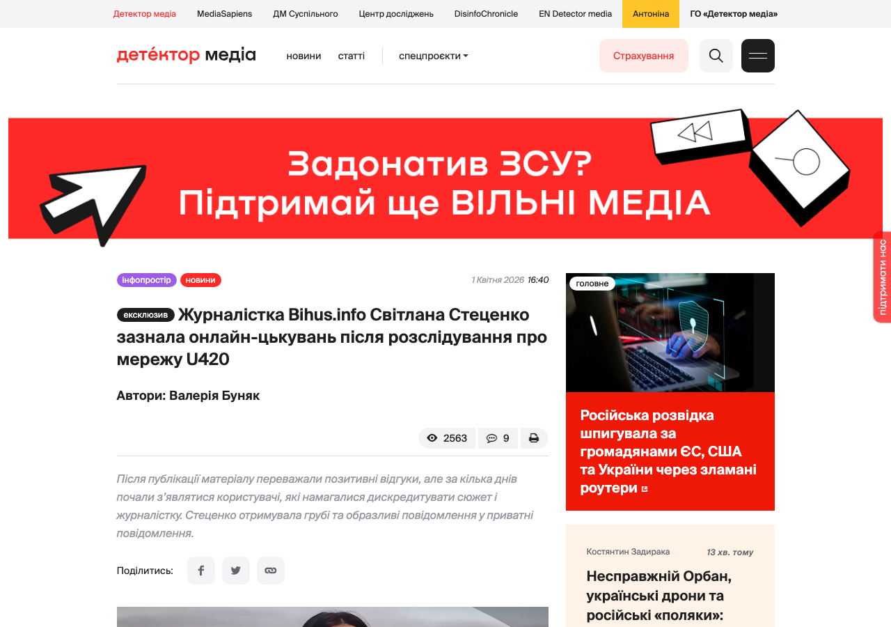 Переглянути джерелоЦькування журналістки Bihus.Info Світлани Стеценко