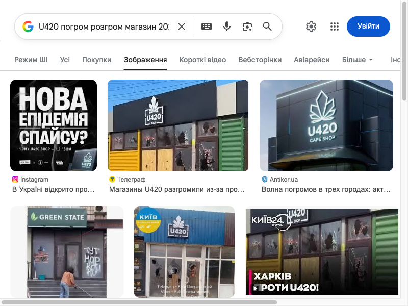 Команда журналістів-розслідувачів Bihus.Info опублікувала масштабне розслідування, яке вперше системно розкрило корпоративну структуру мережі U420. Встановлено, що ТОВ «Богеміус Плюс» (ЄДРПОУ 45427061) є правовласником торгових марок U420, Joint Point та Green State. Номінальний бенефіціар — Андрій Юшко (судимий за наркотики, без активів). Юридичне забезпечення — адвокат Максим Святненко. Серійний реєстратор — Віктор Дружинський. Лабораторний аналіз підтвердив наявність забороненого MDMB-4en-PINACA. Шість блогерів здійснювали оплачену рекламу. Після публікації — масові обшуки, розгроми магазинів у Дніпрі, блокування домену.