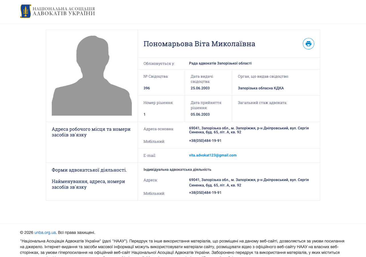 Пономарьова є зареєстрованим патентним повіреним України зі свідоцтвом №396, виданим у 2003 році. Її спеціалізація — інтелектуальна власність, що дозволяє професійно оформлювати захист торгових марок. Довгий стаж у сфері IP свідчить про усвідомлений характер участі у реєстрації брендів мережі.
